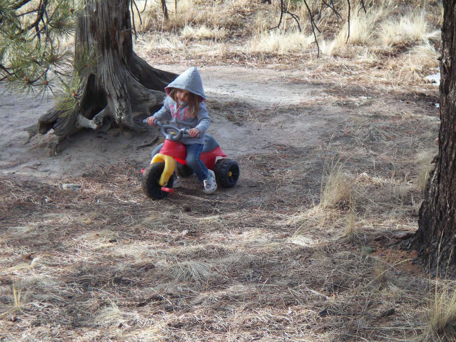 Next step, getting Joss to ride her 2 wheel bike off road, in the forest. For now, when the boys are in the forest she just rides her trike.